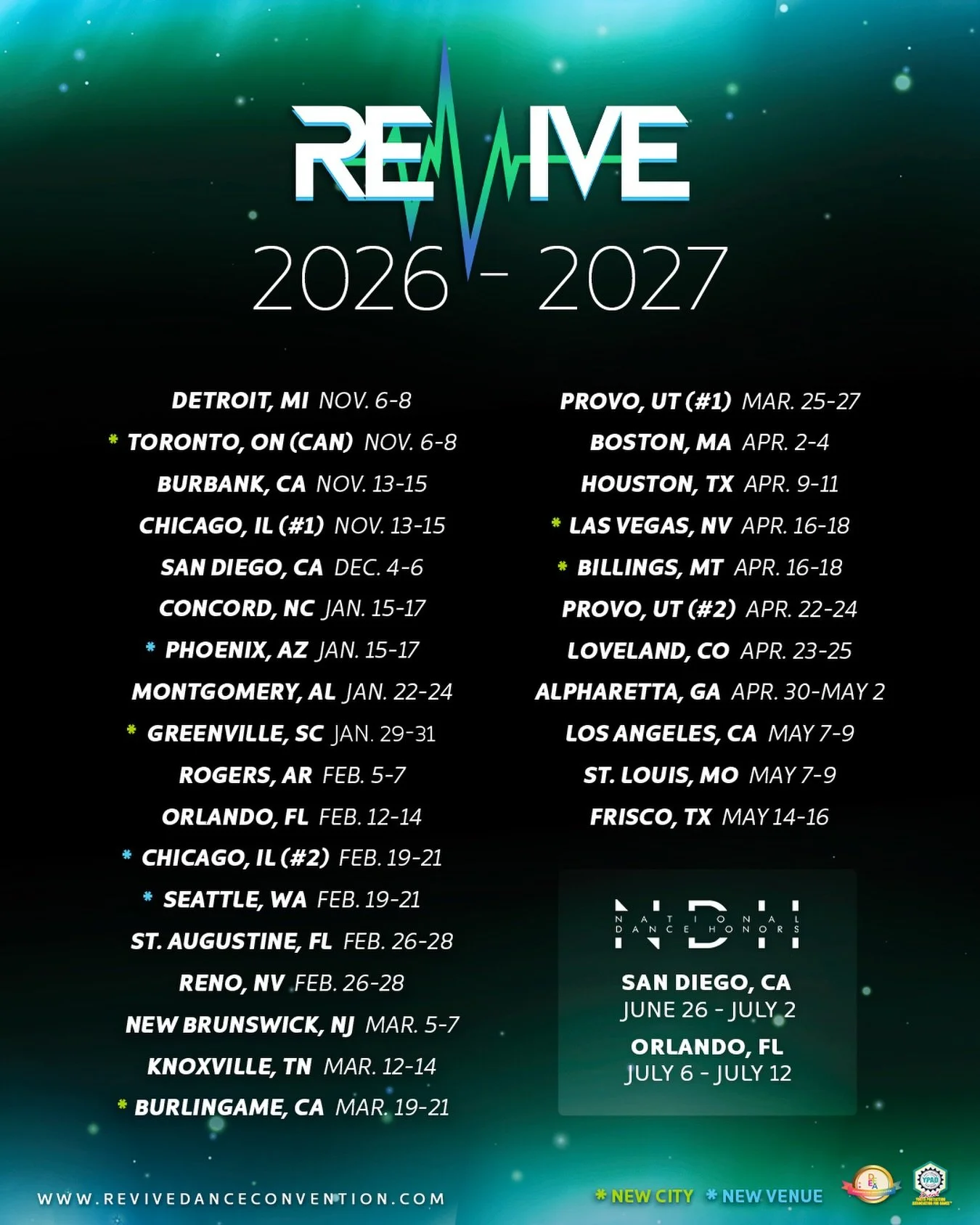 Revive Dance is excited to be making 29 stops during our 2025-2026 North American Regional Tour! Our team’s shared mission is focused on building a safe space for creators, educators, and students to come together through the art of dance. We hope to impact the next generation by providing an inspiring, educational, and motivational milestone on their journey of growth. One that will continue to influence them for a lifetime. Join us at a city near you! We look forward to dancing together!